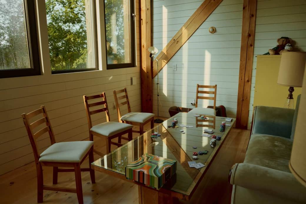 The deck is an amazing place to hang out and take the views and the air. There is an outdoor dining table with six chairs as well as two Adirondack chairs. There is also a small barbecue with metal utensils in the kitchen.